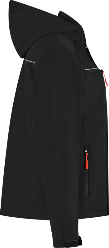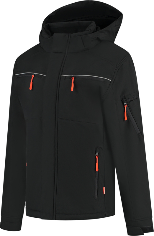 Softshell, 100% polyester geweven buitenlaag + 100% polyester fleece binnenlaag + PU tussenlaag Waterkolom 5000mm, ademend vermogen 3000g/m2/24h
